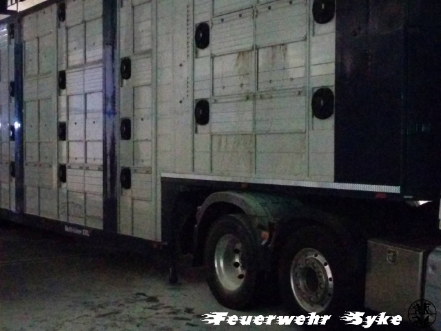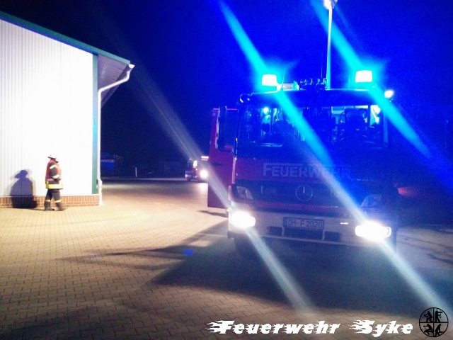 Syke. Am Dienstag Abend (14.02.2017, 18:30 Uhr) wurde der Ortsfeuerwehr Syke gemeldet, dass in der Siemensstraße ein LKW in einer Waschhalle brennen würde. Daraufhin rückte die Ortsfeuerwehr mit 24 Einsatzkräften und 4 Fahrzeugen aus. Vor Ort stellte sich heraus, dass die Löschversuche des LKW-Fahrers erfolgreich waren. Der Fahrer hatte seinen Sattelzug in die Waschhalle gefahren und war dabei den hinteren Bereich des Tiertransport-Aufliegers zu reinigen, als er im Bereich der Doppelachse der Zugmaschine zunächst Rauch und dann Flammen wahr nahm. Geistesgegenwärtig löschte er den Brand im Bereich des Batteriekastens mit einem Pulverlöscher. Dabei atmete er eine unbestimmte Menge Rauch und Löschpulver ein, sodass er zur Sichtung dem Rettungsdienst übergeben wurde. Die Feuerwehr belüftete mit einem Turbolüfter die Waschhalle und kontrollierte mit der Wärmebildkamera den betroffenen Bereich am Fahrzeug. Ein Service-Techniker der Fahrzeug-Herstellers wurde zur Beurteilung des Fahrzeugzustandes angefordert. Da von dem zunächst stillgelegten Fahrzeug keine Gefahr mehr ausging, wurde der Einsatz der Feuerwehr nach gut einer Dreiviertelstunde beendet. Die Polizei war ebenfalls mit einer Einheit vor Ort. Die Waschhalle wurde durch den Brand nicht in Mitleidenschaft gezogen.