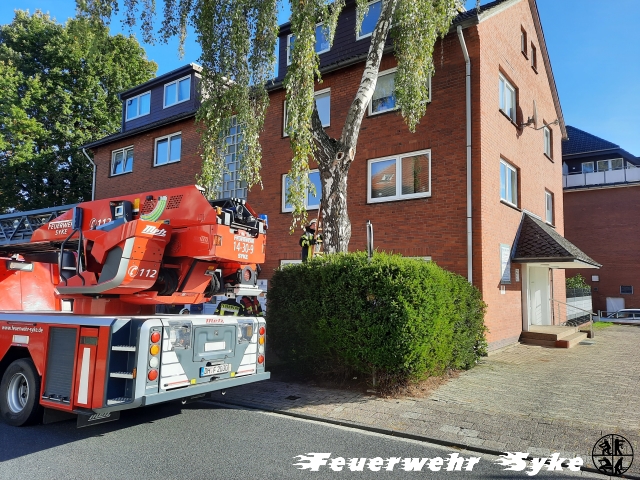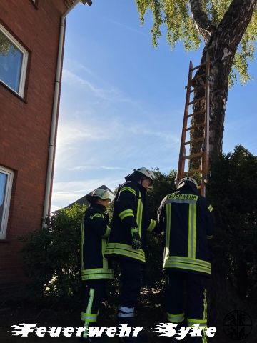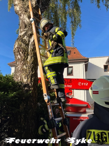 Die Ortsfeuerwehr Syke wurde zur Rettung einer Katze aus einem Baum alarmiert. Die Katze befand sich in einer Höhe, die mit der Steckleiter errreichbar war. Ein Kamerad steig die Leiter hoch und mit der Katze wieder herunter. Die Katze wurde im Anschluss an ihre Besitzer übergeben.