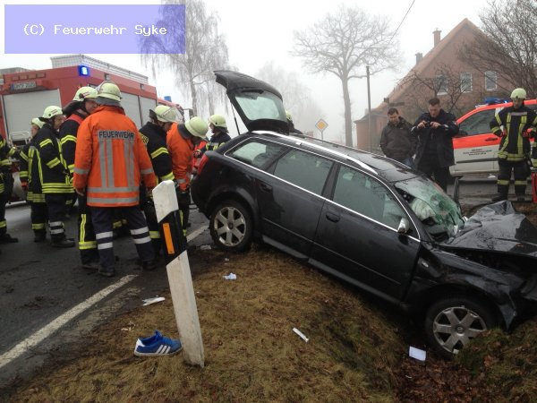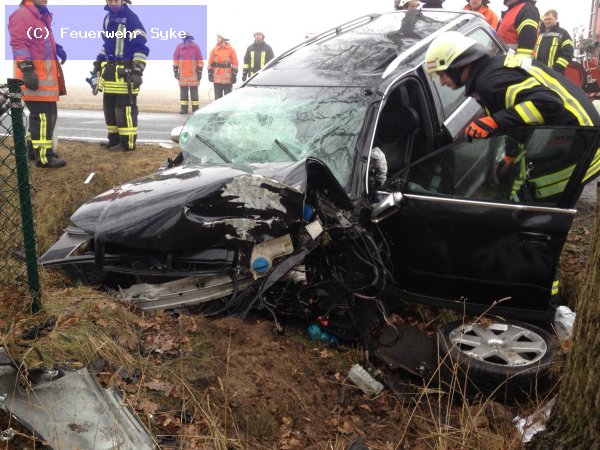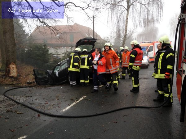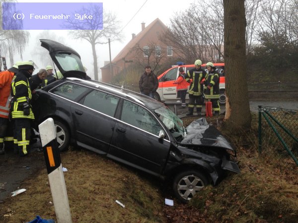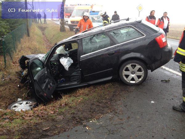 Ein PKW kam beim Überholvorgang von der Straße ab und landete im Graben. Zwei Insassen wurden Verletzt und eingeklemmt. Die Feuerwehr befreite die Personen und übergab sie dem Rettungsdienst.
