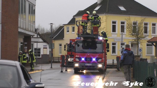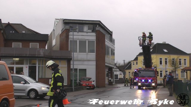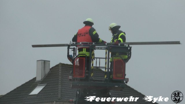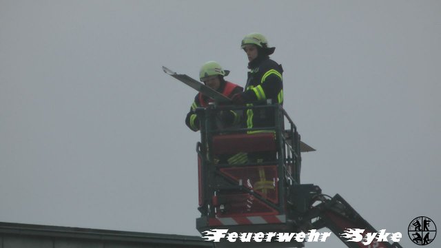 Durch starke Windböen löste sich ein Sonnenschutz von einem Glasdach und drohte auf die Straße zu fallen. Dieser wurde mit Hilfe der Drehleiter entfernt und somit die Gefahr beseitigt.