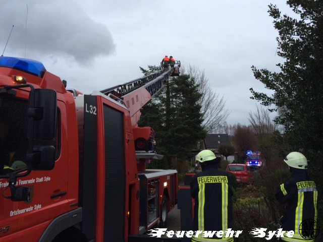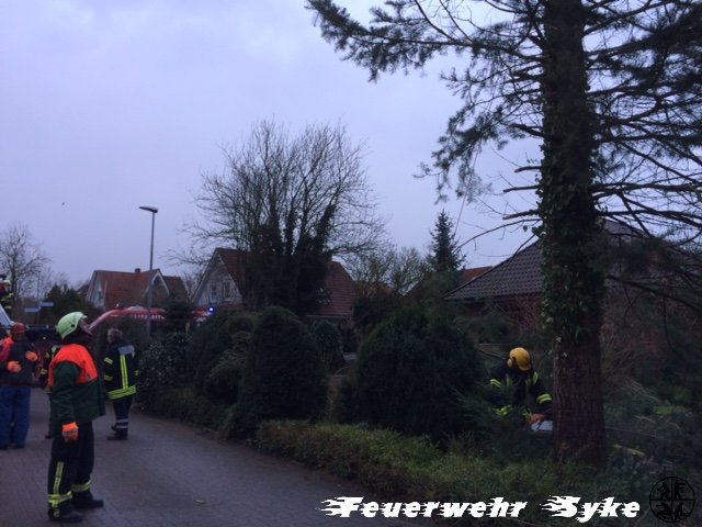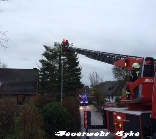 Aus einer großen Tanne war ein dicker Ast aus dem oberen Bereich abgebrochen und herab gefallen. Da weitere Äste aus der Tanne drohten abzubrechen wurde diese komplett gefällt.
