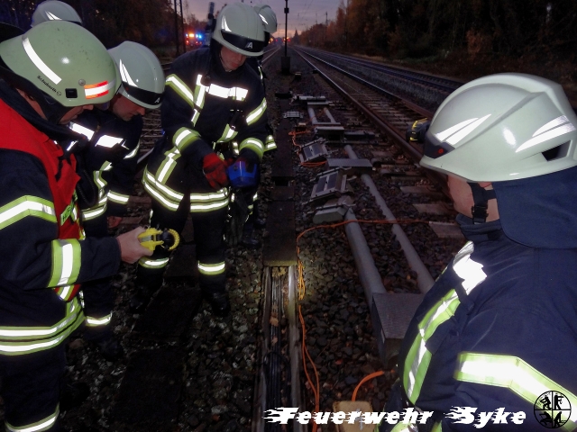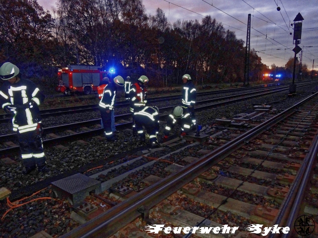 Die Ortsfeuerwehr Syke wurde zu einem Brandeinsatz auf der Bahnstrecke zwischen Syke und Barrien alarmiert. Einige hundert Meter vor dem Bahnhof Syke war es zu einer Rauchentwicklung im Bereich einer Weiche gekommen. Das Feuer war beim Eintreffen der Einsatzkräfte bereits erloschen und nach einer Kontrolle der Stelle mussten keine weiteren Maßnahmen getroffen werden. Die Einsatzstelle wurde an den Notfallmanager der Deutschen Bahn übergeben. Die Bahnstrecke war für die Dauer des Einsatzes gesperrt worden.