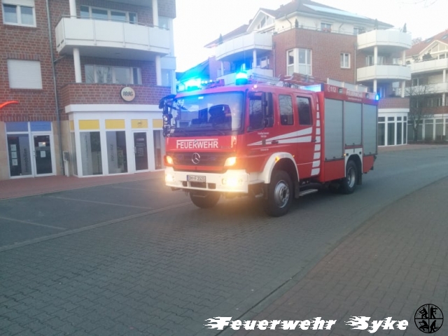 Die Ortsfeuerwehr Syke wurde von der Polizei zur Unterstützung angefordert. Unbekannte hatten Absperrmaterial von einer Baustelle entwendet und auf einem Schornstein platziert. Mit Hilfe der Drehleiter wurden die Gegenstände vom Schornstein entfernt, sodass keine Gefahr durch Herabfallen mehr bestand.