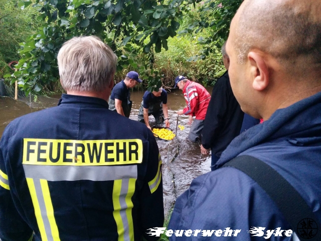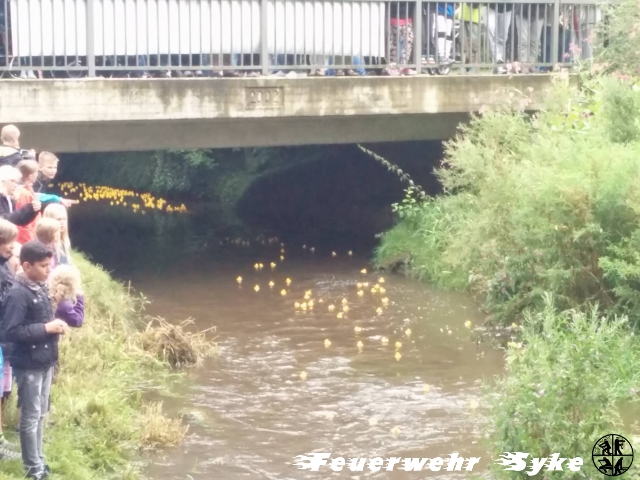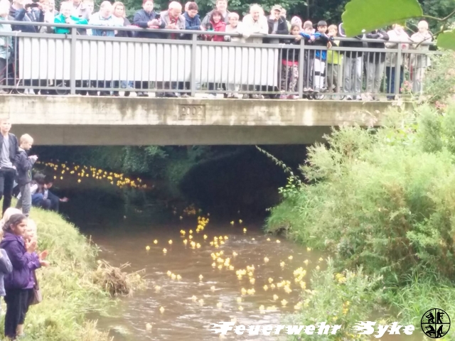 Gestern am 11. August 2017 unterstützte die Orstfeuerwehr Syke den Lions Club Syke bei der Ausrichtung des 2. Syker Entenrennens. Die Kameraden halfen beim Zieleinlauf und sorgten dafür, dass die Enten sicher durch das Ziel kamen, aber nicht darüber hinaus. Neben der Ortsfeuerwehr Syke waren auch der THW Ortsverband Syke, die DRK Bereitschaft Syke und die DLRG Syke vor Ort, um den Enten ihren Weg zu weisen.