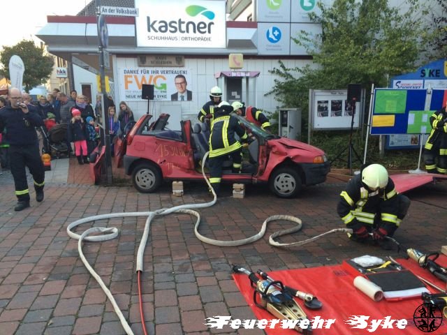 Am 23.06.2016 fand bei wunderschönem Oktoberwetter der Syker Herbstmarkt statt. Unsere Feuerwehr und Jugendfeuerwehr präsentierten sich dabei an der Volksbank.