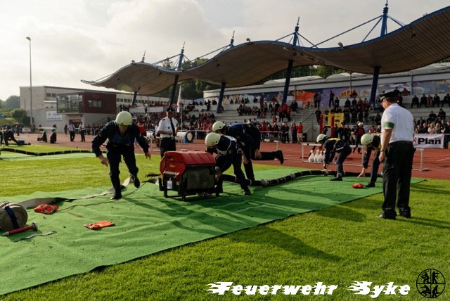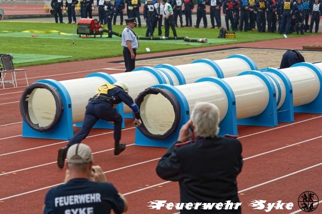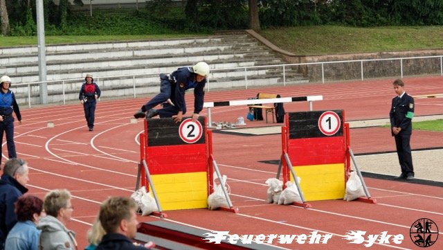 Angetreten war Syke für diesen Wettbewerb in der B-Gruppe mit Alterspunkten, hier wurde ein Löschangriff ohne Wasser und ein Staffellauf durchgeführt, in der die Syker den 10. Platz erreicheten und dafür eine Silbermedallie gewannen.