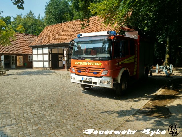 Syke. Die seltene Gelegenheit an einem zum Abriss freigegebenen Objekt alarmmäßig üben zu können, nutzten am Dienstag Abend (10.05.2016, 18:07 Uhr) Ortsbrandmeister Fabian Fricke und sein erster Stellvertreter Rainer Brandt zu einer kleinen Einsatzübung für die Ortsfeuerwehr Syke in der Bürgermeister-Otersen-Straße. Die angesetzte Lage in dem Einfamilienhaus war ein Dachstuhlbrand mit fünf vermissten Personen darunter ein Kind. Dies führte zu der vollständigen Alarmierung der Ortsfeuerwehr, inklusive der im Ortsteil Syke eher selten genutzten Sirenen. Es trafen zur Feierabendzeit in kurzer Zeit 38 Einsatzkräfte mit sechs Fahrzeugen an der Einsatzstelle ein. Um die Entsorgungskosten für das Gebäude nicht in die Höhe schnellen zu lassen, konnte der Brandrauch wie bei den üblichen Übungslagen lediglich durch Disco-Nebel simuliert werden. Die erfahrenen Führungskräfte erkannten schnell die Übungslage, konnten ihre eingesetzten Trupps im Inneren das Hauses aber mal richtig arbeiten lassen, indem alle verschlossenen Türen mit Gewalt geöffnet werden durften, um das Gebäude vollständig nach den vermissten Personen absuchen zu können. Die übliche Rücksichtnahme auf das Übungsobjekt konnte ausnahmsweise vernachlässigt werden. Hinzugezogen wurde noch die Ortsfeuerwehr Henstedt, die im Einsatzfall bei einem bestätigtem Gebäudebrand zusammen mit der Schwerpunktfeuerwehr ausrückt. Somit kamen zwei weitere Einsatzfahrzeuge und 12 Kräfte zum Einsatz. Vor Ort konnte Amtsleiter Horst Meyer und die herbeigeeilte Nachbarschaft eine angemessene ruhige, jedoch zügige und professionelle Arbeitsatmosphäre feststellen. Die Übungslage zeigte die zugrunde liegenden Strukturen und die Erfolge der geleistete Ausbildungsarbeit sehr gut auf. Die beiden Organisatoren waren sehr zufrieden mit dem Übungsverlauf. Sie drückten auch ihren großen Dank der Familie Krömer aus, die ihnen ihr Eigentum für die Übung zur Verfügung stellte, was heutzutage selten vorkommt.